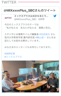 - SBCラジオ「あなたを守る防災知恵袋」に出演し、生田アナと防災について雑談をしました。