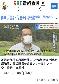 - NHK信州午後6時のニュースに神代断層アーカイブのサインボードを設置する様子が取り上げられ、インタビューに答えました。